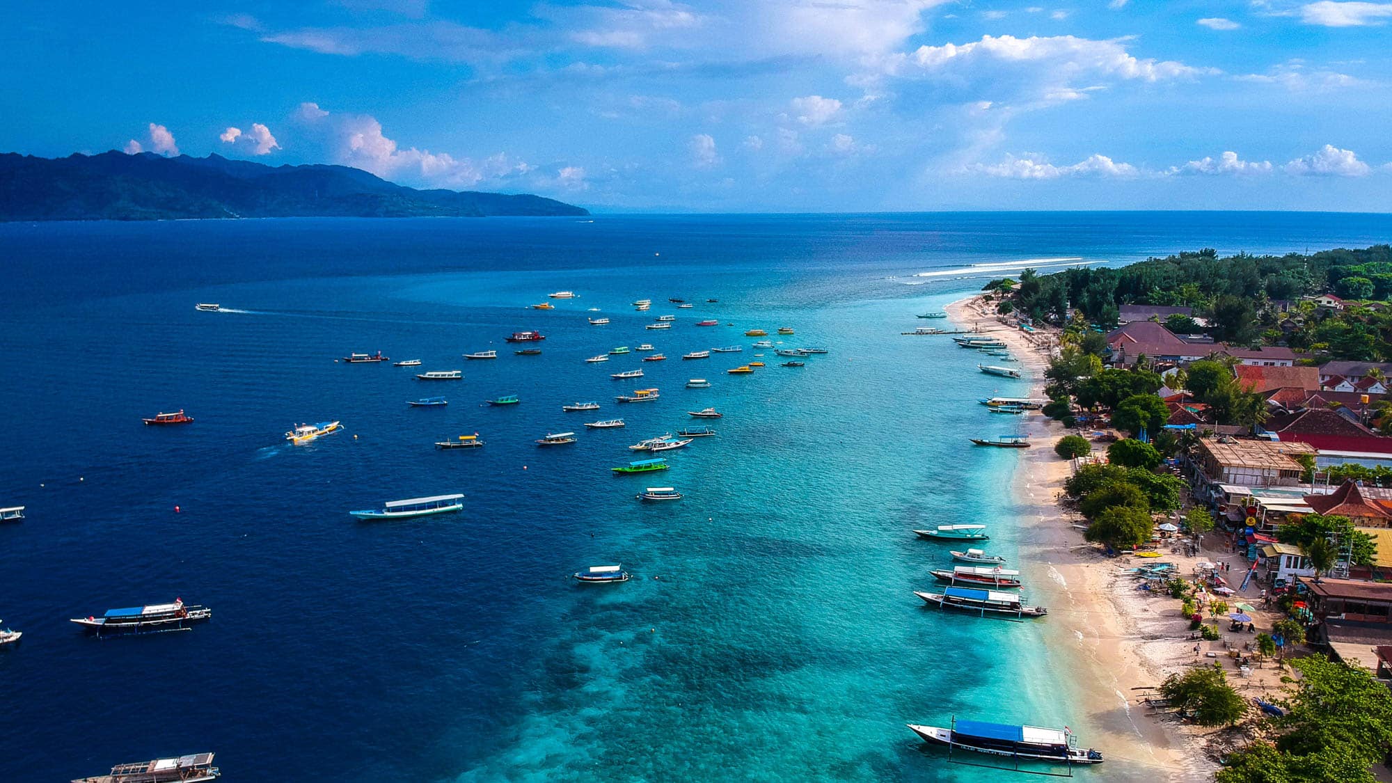 Toto nepatrné souostroví ležící přímo u severozápadního pobřeží Lomboku, dvě hodiny lodí od Bali, je známé svými korálovými útesy a mořským životem spolu s párty scénou i poklidným relaxováním na pláži. Naskočte na kolo, zaplavte si v průzračných vodách nebo se jen tak povalujte.